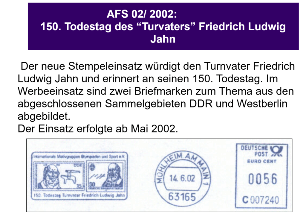 Der Absenderstempel SALT LAKE CITY 2002 (von 2001) wurde mit neuer Farbe im Jahr 2002 als AFS 1-2002 eingesetzt.