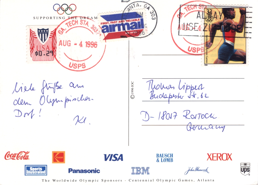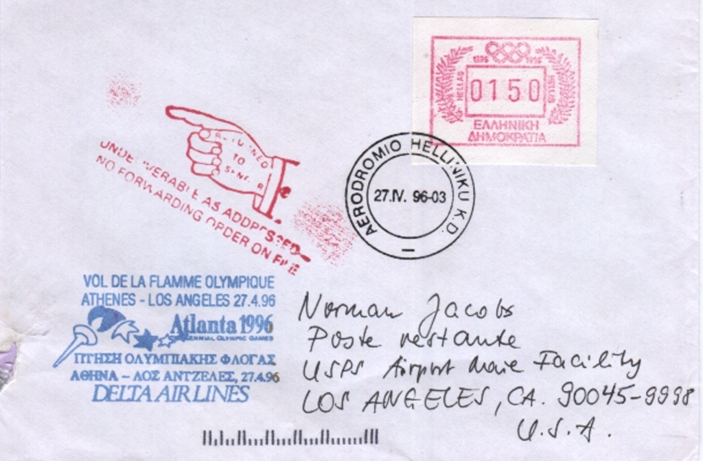 Auch wenn die griechische Ausgabe dem o.g. Jubiläum galt, konnte sie sinnvoll für Belege genutzt werden, die nach Atlanta befördert wurden: