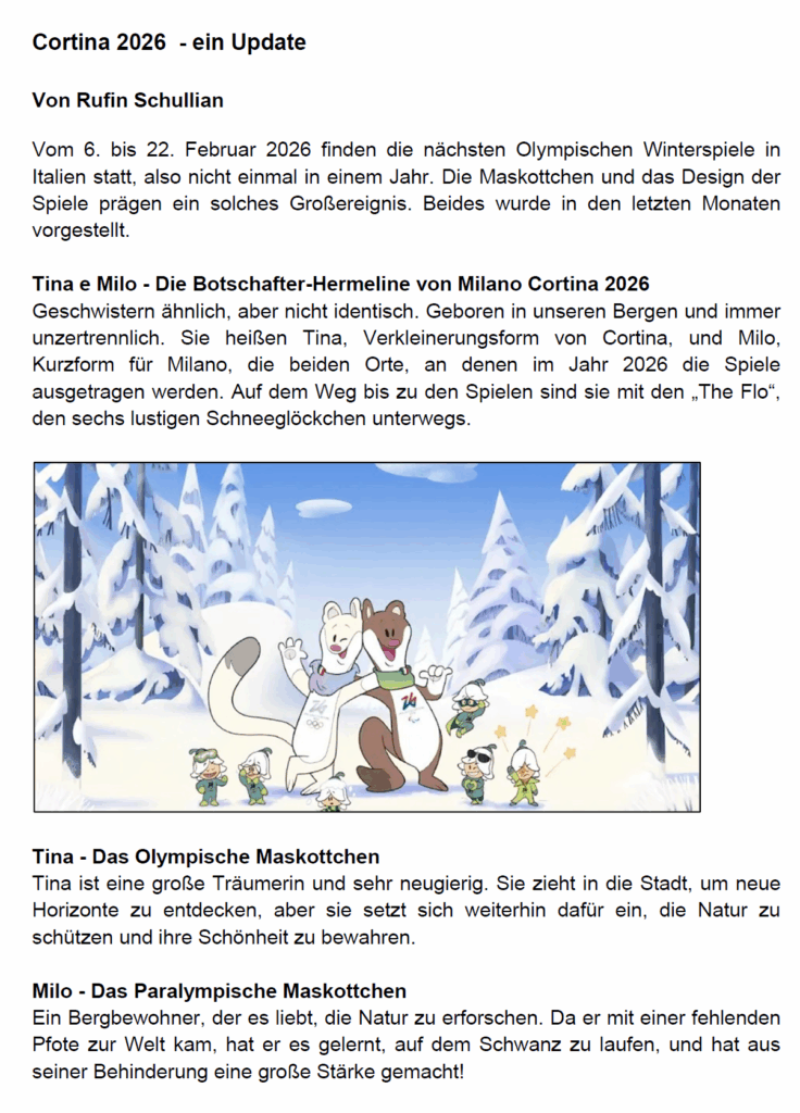 MILANO-CORTINA 2026 – Update 5. August 2025 sportphil Olympische Winterspiele MILANO CORTINA 2026 Ein Update aus unseren Journalen Teilen mit: Klick, um auf Facebook zu teilen (Wird in neuem Fenster geöffnet) Facebook Klicke, um auf X zu teilen (Wird in neuem Fenster geöffnet) X