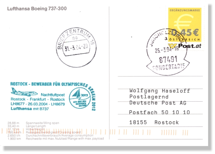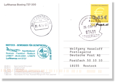 Ende März 2004 wurde der Flugplan für die Nachtluftpostlinie von Rostock/Laage zum