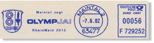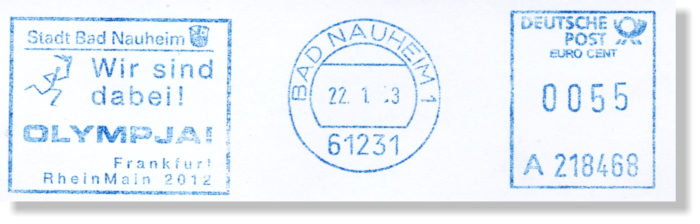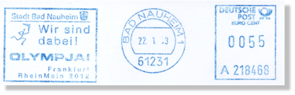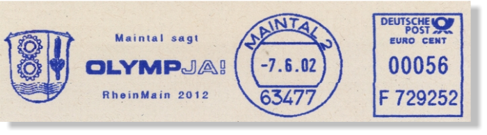 Absenderfreistempel mit dem Bewerbungslogo wurden von den Stadtverwaltungen Frankfurts und umliegenden Städte eingesetzt.