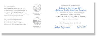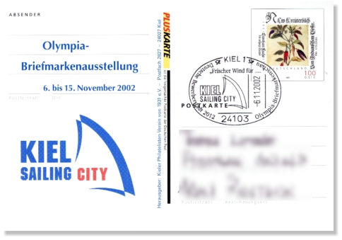 Der Kieler Philatelistenverein stellte seine Briefmarkenausstellung 2002 unter das Thema “Olympische Spiele”. Die