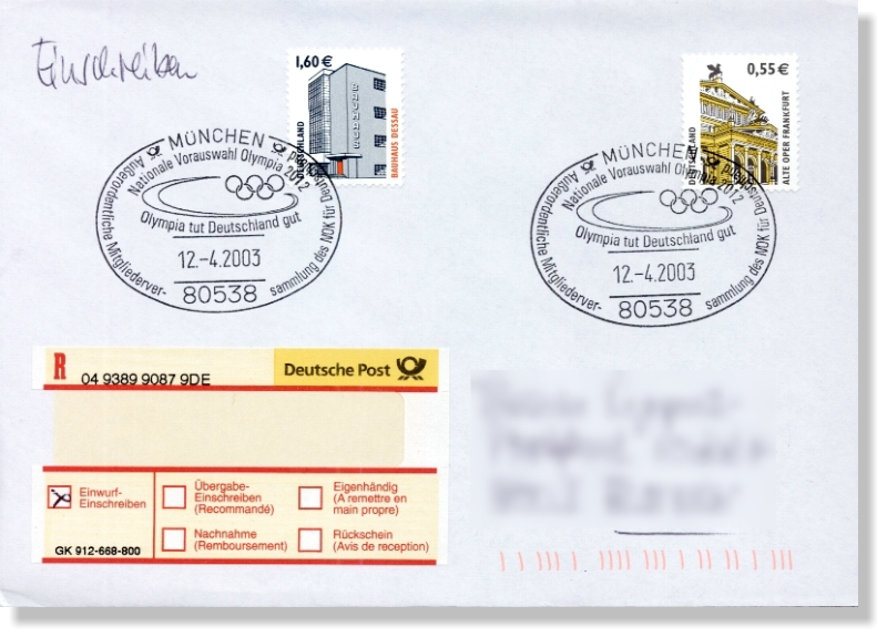 Tarifgerechter Einschreibbrief vom Tag der Entscheidung für Leipzig in